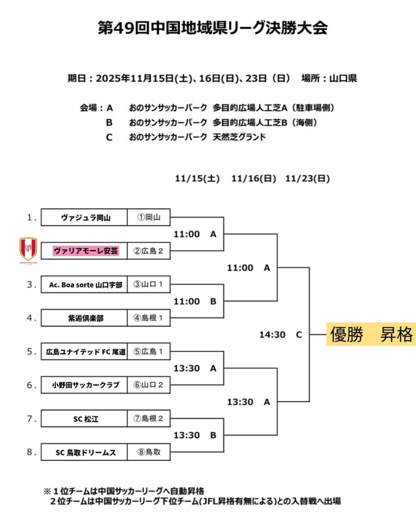 【お知らせ】第49回 中国地域県サッカーリーグ決勝大会試合情報