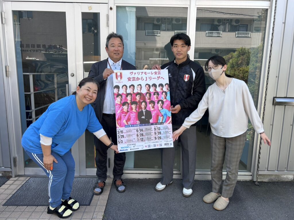 日頃より、ヴァリアモーレ安芸の活動に多大なるご支援を賜り、誠にありがとうございます。今シーズンも前川印刷株式会社様に2026シーズンのポスターならびにチラシを制作していただきました。