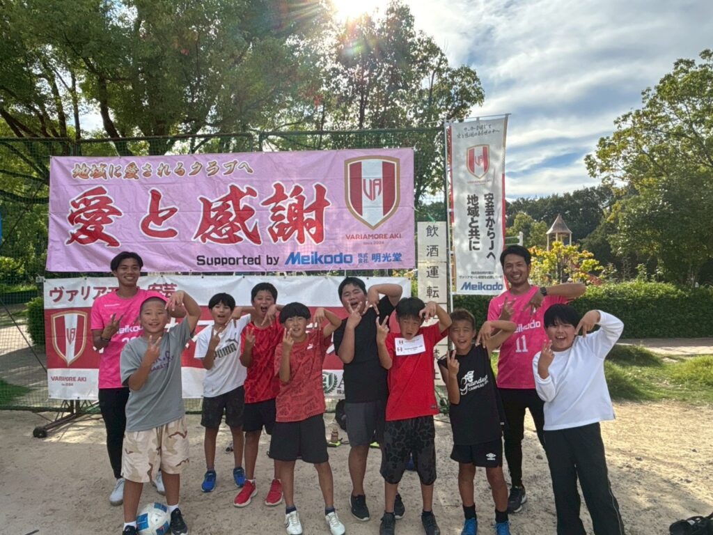 子どもたちのシュートが、笑顔が、明るいまちの未来を作り出すことを我々は信じています!本日のキックターゲット体験をきっかけに、スポーツをヴァリアモーレ安芸をもっと身近に感じてもらえるよう、そして「子どもたちが誇れるまち」に貢献できるよう引き続き、地域の皆様とご協力させていただきながら共創していきます。ヴァリアモーレ安芸は今後もホームタウンに根ざした取り組みを継続し、地域と共に歩んでまいります。よろしくお願いいたします。