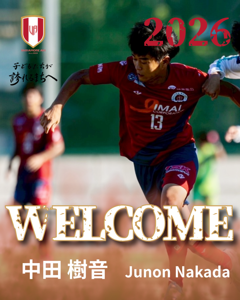 2026シーズンよりヴァリアモーレ安芸に加入することとなりました、中田樹音です。Jリーグ参入を目指すチームの本気の熱量をさらに加速させれるよう熱く闘います。これまでサッカーを通じて関わってくださった多くの指導者の方や仲間、家族への感謝を常に持ち、必ず結果で恩返しできるよう日々努力し続けます。