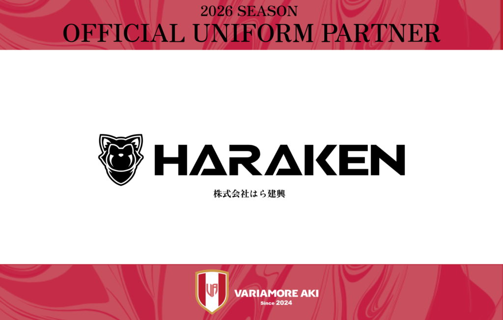 日頃より、ヴァリアモーレ安芸の活動に多大なるご支援を賜り、誠にありがとうございます。この度、株式会社はら建興 様と2026シーズンのオフィシャルパートナー契約を締結し、共に戦うこととなりました。
